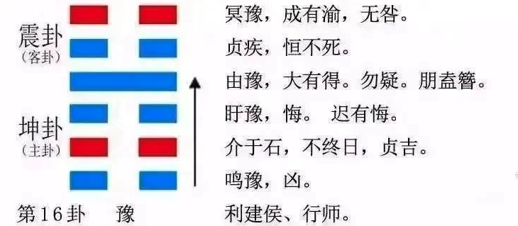 【象曰】:太公插下杏黃旗,收妖為徒歸西歧,自此青龍得了位,一旦謀望百事宜。這個卦是異卦(下坤上震)相疊,坤為地,為順;震為雷,為動。雷依時(shí)出,預(yù)示大地回春。因順而動,和樂之源。此卦與謙卦互為綜卦,交互作用。